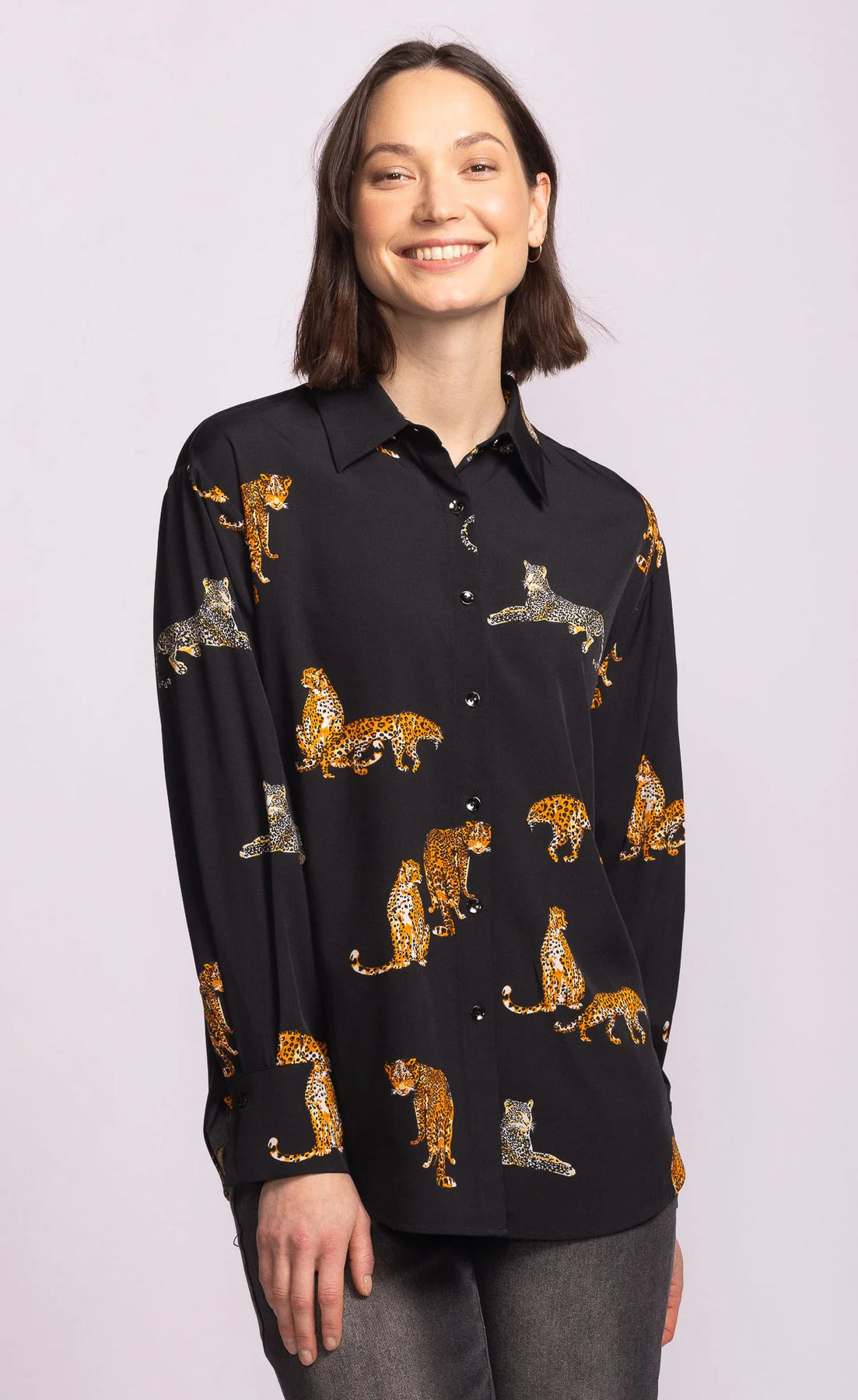 The Tora Top brings wild charm to your wardrobe with its bold all-over leopard print. Featuring a classic collar, buttoned cuffs, and a handy front pocket, this button-up shirt is perfect for mixing into your favorite trousers or skirts. Dress it up with boots for a fun day-to-night style that effortlessly stands out.